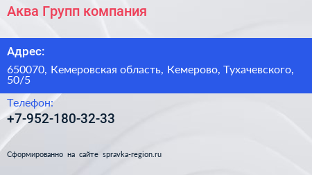 Аква Групп, компания по адресу 650070, Кемеровская область, Кемерово, Тухачевского, 50/5 в дальнейшем Организация, размещена в следующих категориях: