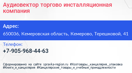 Аудиовектор, торгово-инсталляционная компания по адресу 650036, Кемеровская область, Кемерово, Терешковой, 41 в дальнейшем Организация, размещена в следующих категориях: