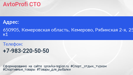 AvtoProfi, СТО по адресу 650905, Кемеровская область, Кемерово, Рябинская 2-я, 25 к1 в дальнейшем Организация, размещена в следующих категориях:
