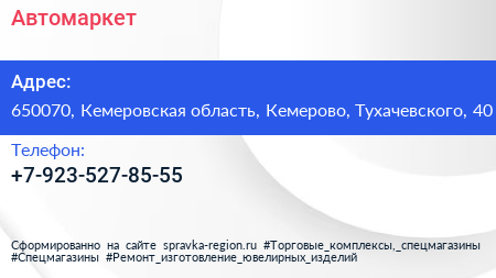 Автомаркет по адресу 650070, Кемеровская область, Кемерово, Тухачевского, 40 в дальнейшем Организация, размещена в следующих категориях: