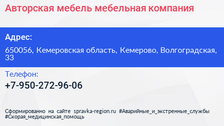 Авторская мебель, мебельная компания по адресу 650056, Кемеровская область, Кемерово, Волгоградская, 33 в дальнейшем Организация, размещена в следующих категориях: