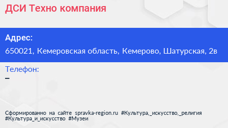 ДСИ Техно, компания по адресу 650021, Кемеровская область, Кемерово, Шатурская, 2в в дальнейшем Организация, размещена в следующих категориях: