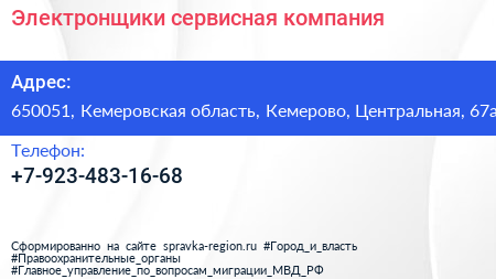Электронщики, сервисная компания по адресу 650051, Кемеровская область, Кемерово, Центральная, 67а в дальнейшем Организация, размещена в следующих категориях: