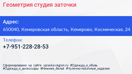 Геометрия, студия заточки по адресу 650040, Кемеровская область, Кемерово, Космическая, 24 в дальнейшем Организация, размещена в следующих категориях: