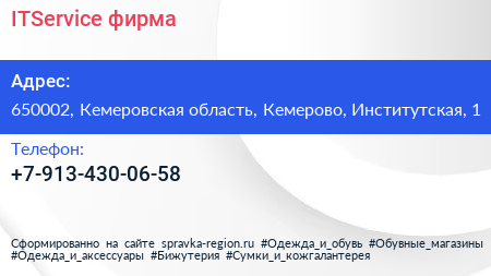 ITService, фирма по адресу 650002, Кемеровская область, Кемерово, Институтская, 1 в дальнейшем Организация, размещена в следующих категориях: