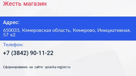 Жесть, магазин по адресу 650033, Кемеровская область, Кемерово, Инициативная, 57 к2 в дальнейшем Организация, размещена в следующих категориях: