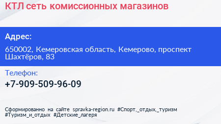 КТЛ, сеть комиссионных магазинов по адресу 650002, Кемеровская область, Кемерово, проспект Шахтёров, 83 в дальнейшем Организация, размещена в следующих категориях: