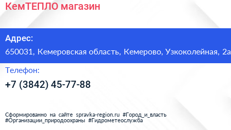 КемТЕПЛО, магазин по адресу 650031, Кемеровская область, Кемерово, Узкоколейная, 2а в дальнейшем Организация, размещена в следующих категориях: