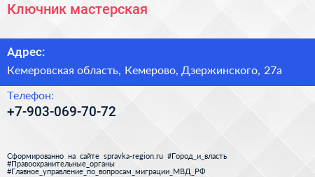 Ключник, мастерская по адресу Кемеровская область, Кемерово, Дзержинского, 27а в дальнейшем Организация, размещена в следующих категориях: