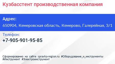 Кузбасстент, производственная компания по адресу 650904, Кемеровская область, Кемерово, Галерейная, 3/1 в дальнейшем Организация, размещена в следующих категориях: