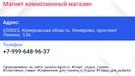 Магнит, комиссионный магазин по адресу 650023, Кемеровская область, Кемерово, проспект Ленина, 136 в дальнейшем Организация, размещена в следующих категориях: