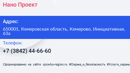 Нано-Проект по адресу 650001, Кемеровская область, Кемерово, Инициативная, 63а в дальнейшем Организация, размещена в следующих категориях: