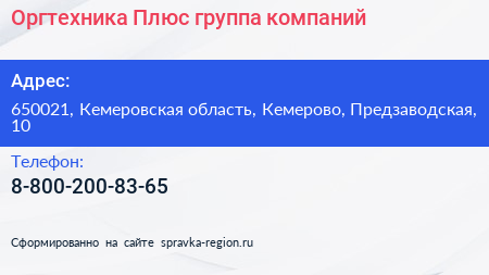 Оргтехника Плюс, группа компаний по адресу 650021, Кемеровская область, Кемерово, Предзаводская, 10 в дальнейшем Организация, размещена в следующих категориях: