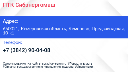 ПТК Сибэнергомаш по адресу 650021, Кемеровская область, Кемерово, Предзаводская, 10 к1 в дальнейшем Организация, размещена в следующих категориях: