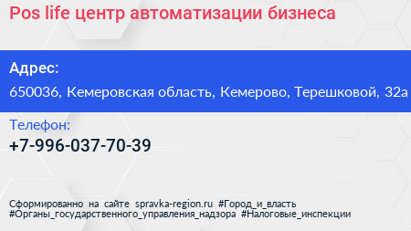 Pos-life, центр автоматизации бизнеса по адресу 650036, Кемеровская область, Кемерово, Терешковой, 32а в дальнейшем Организация, размещена в следующих категориях: