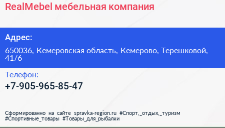 RealMebel, мебельная компания по адресу 650036, Кемеровская область, Кемерово, Терешковой, 41/6 в дальнейшем Организация, размещена в следующих категориях: