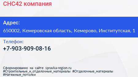 СНС42, компания по адресу 650002, Кемеровская область, Кемерово, Институтская, 1 в дальнейшем Организация, размещена в следующих категориях:
