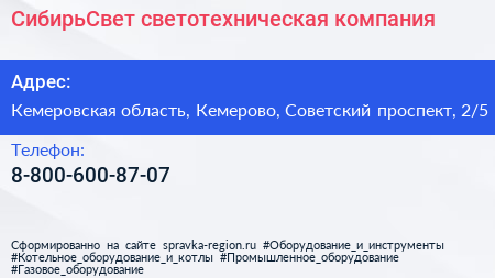 СибирьСвет, светотехническая компания по адресу Кемеровская область, Кемерово, Советский проспект, 2/5 в дальнейшем Организация, размещена в следующих категориях: