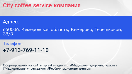 Сity coffee service, компания по адресу 650036, Кемеровская область, Кемерово, Терешковой, 39/3 в дальнейшем Организация, размещена в следующих категориях: