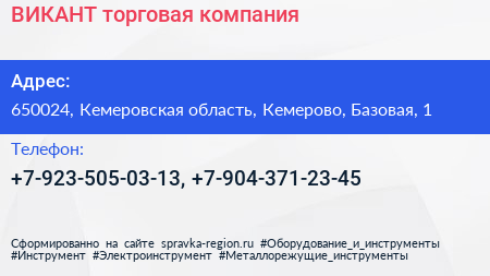 ВИКАНТ, торговая компания по адресу 650024, Кемеровская область, Кемерово, Базовая, 1 в дальнейшем Организация, размещена в следующих категориях:
