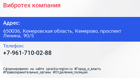 Вибротех, компания по адресу 650036, Кемеровская область, Кемерово, проспект Ленина, 90/5 в дальнейшем Организация, размещена в следующих категориях: