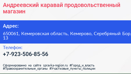 Андреевский каравай, продовольственный магазин по адресу 650061, Кемеровская область, Кемерово, Серебряный Бор, 13 в дальнейшем Организация, размещена в следующих категориях: