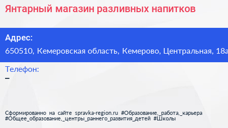 Янтарный, магазин разливных напитков по адресу 650510, Кемеровская область, Кемерово, Центральная, 18а в дальнейшем Организация, размещена в следующих категориях: