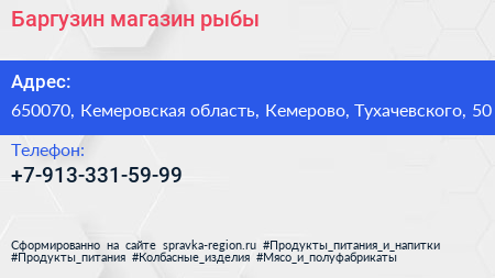 Баргузин, магазин рыбы по адресу 650070, Кемеровская область, Кемерово, Тухачевского, 50 в дальнейшем Организация, размещена в следующих категориях: