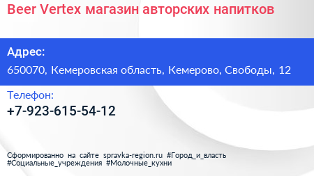 Beer Vertex, магазин авторских напитков по адресу 650070, Кемеровская область, Кемерово, Свободы, 12 в дальнейшем Организация, размещена в следующих категориях: