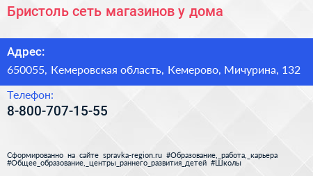 Бристоль, сеть магазинов у дома по адресу 650055, Кемеровская область, Кемерово, Мичурина, 132 в дальнейшем Организация, размещена в следующих категориях: