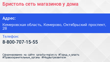 Бристоль, сеть магазинов у дома по адресу Кемеровская область, Кемерово, Октябрьский проспект, 28 в дальнейшем Организация, размещена в следующих категориях: