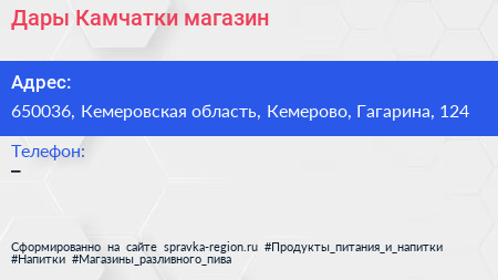 Дары Камчатки, магазин по адресу 650036, Кемеровская область, Кемерово, Гагарина, 124 в дальнейшем Организация, размещена в следующих категориях: