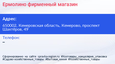 Ермолино, фирменный магазин по адресу 650002, Кемеровская область, Кемерово, проспект Шахтёров, 49 в дальнейшем Организация, размещена в следующих категориях: