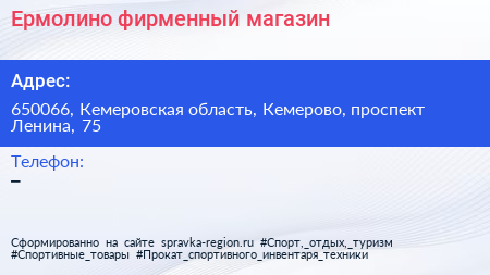 Ермолино, фирменный магазин по адресу 650066, Кемеровская область, Кемерово, проспект Ленина, 75 в дальнейшем Организация, размещена в следующих категориях:
