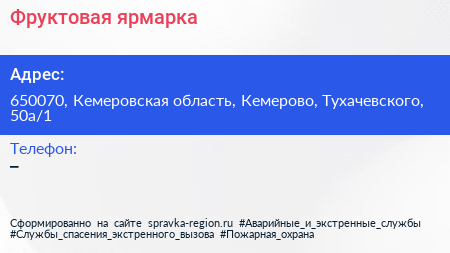 Фруктовая ярмарка по адресу 650070, Кемеровская область, Кемерово, Тухачевского, 50а/1 в дальнейшем Организация, размещена в следующих категориях: