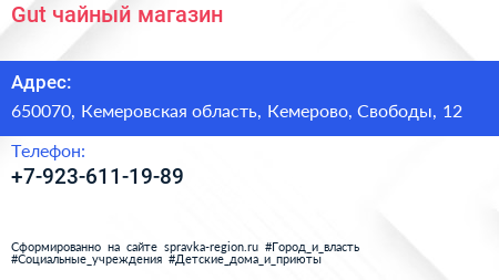 Gut, чайный магазин по адресу 650070, Кемеровская область, Кемерово, Свободы, 12 в дальнейшем Организация, размещена в следующих категориях: