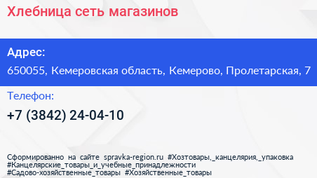 Хлебница, сеть магазинов по адресу 650055, Кемеровская область, Кемерово, Пролетарская, 7 в дальнейшем Организация, размещена в следующих категориях: