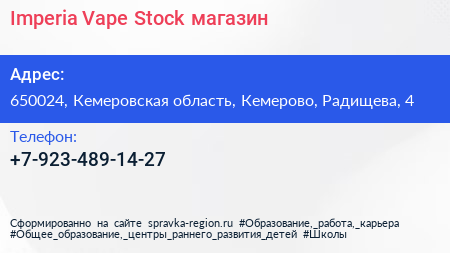 Imperia Vape Stock, магазин по адресу 650024, Кемеровская область, Кемерово, Радищева, 4 в дальнейшем Организация, размещена в следующих категориях: