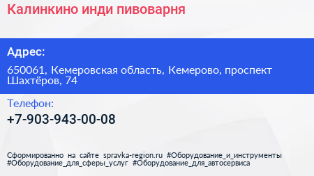 Калинкино, инди-пивоварня по адресу 650061, Кемеровская область, Кемерово, проспект Шахтёров, 74 в дальнейшем Организация, размещена в следующих категориях: