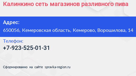 Калинкино, сеть магазинов разливного пива по адресу 650056, Кемеровская область, Кемерово, Ворошилова, 14 в дальнейшем Организация, размещена в следующих категориях: