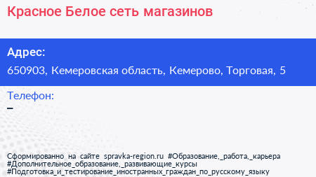 Красное & Белое, сеть магазинов по адресу 650903, Кемеровская область, Кемерово, Торговая, 5 в дальнейшем Организация, размещена в следующих категориях: