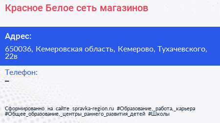 Красное & Белое, сеть магазинов по адресу 650036, Кемеровская область, Кемерово, Тухачевского, 22в в дальнейшем Организация, размещена в следующих категориях: