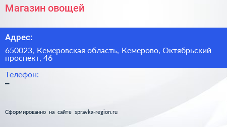 Магазин овощей по адресу 650023, Кемеровская область, Кемерово, Октябрьский проспект, 46 в дальнейшем Организация, размещена в следующих категориях: