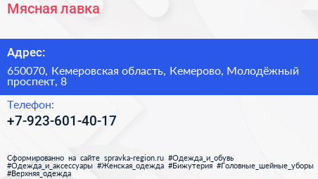 Мясная лавка по адресу 650070, Кемеровская область, Кемерово, Молодёжный проспект, 8 в дальнейшем Организация, размещена в следующих категориях: