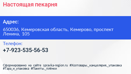 Настоящая пекарня по адресу 650036, Кемеровская область, Кемерово, проспект Ленина, 105 в дальнейшем Организация, размещена в следующих категориях:
