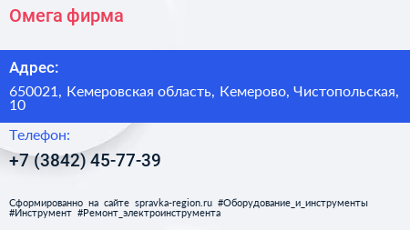 Омега, фирма по адресу 650021, Кемеровская область, Кемерово, Чистопольская, 10 в дальнейшем Организация, размещена в следующих категориях: