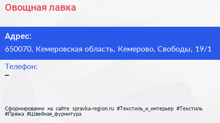 Овощная лавка по адресу 650070, Кемеровская область, Кемерово, Свободы, 19/1 в дальнейшем Организация, размещена в следующих категориях: