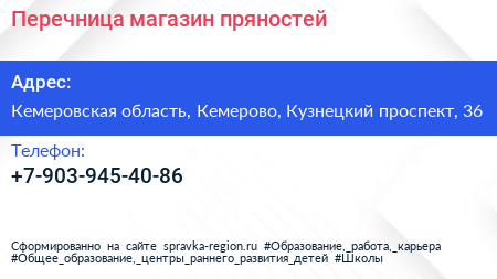 Перечница, магазин пряностей по адресу Кемеровская область, Кемерово, Кузнецкий проспект, 36 в дальнейшем Организация, размещена в следующих категориях: