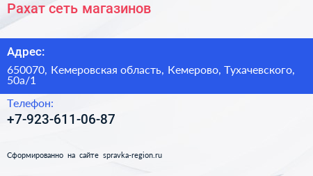 Рахат, сеть магазинов по адресу 650070, Кемеровская область, Кемерово, Тухачевского, 50а/1 в дальнейшем Организация, размещена в следующих категориях:
