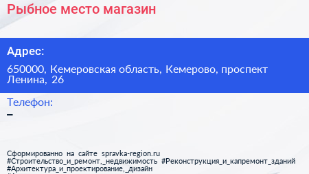 Рыбное место, магазин по адресу 650000, Кемеровская область, Кемерово, проспект Ленина, 26 в дальнейшем Организация, размещена в следующих категориях: